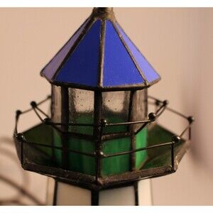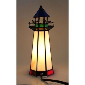 Nautical Lighthouse Stained Glass Table Lamp/Night Light Home Decor Accent VTG