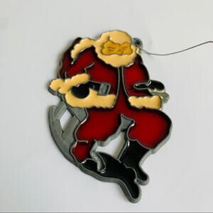 Vintage Stained Glass Metal Santa Clause Christmas Tree Ornament