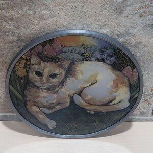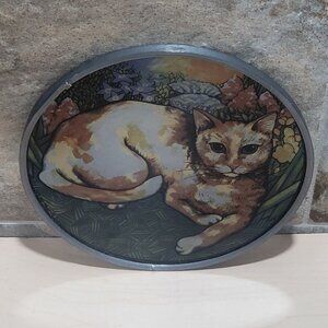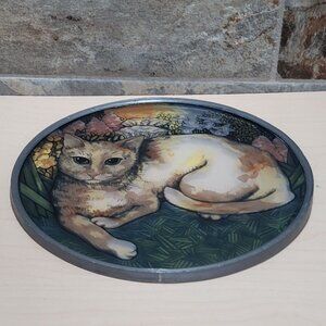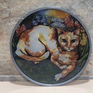 Vintage Stained Glass Suncatcher Cat in Garden Table Decor