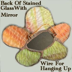 Vintage Stained Glass With Mirror In Center Miniature Size About 4" Total Size