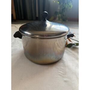 This vintage stainless steel and aluminum clad 4 Qt stockpot with lid is ready to assist you in your cooking adventures! PFAS FREE so you can have a peace of mind while cooking.
