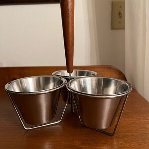 Vintage Stainless Steel & Wood Condiment Caddy - snack caddy