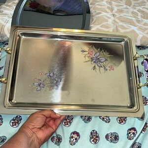 Vintage Stainless Tray w/Flowers Silver Italian Serving Tray Silver Floral Tray