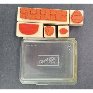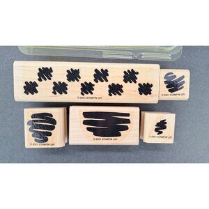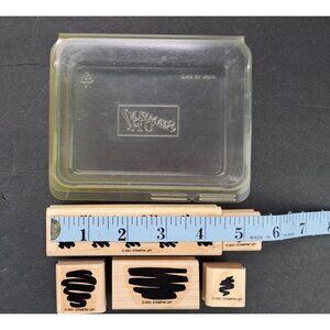 Vintage Stampin Up Set Of 5 Squiggle Pattern Rubber Stamps Storage Case Clean