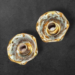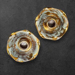 Vintage Stangl 22K Gold Candle Holders #5069 Seafoam Ruffled Mid-Century Pair