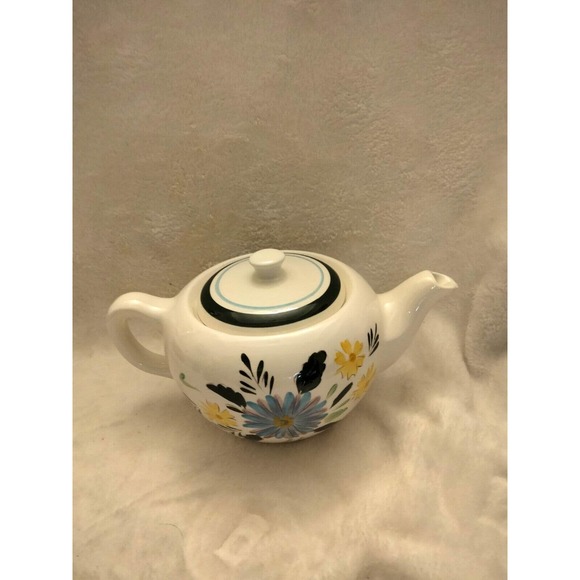 Vintage Stangl Hand Painted Floral Teapot Denmark. Very small chip on spout. See photos