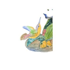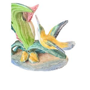 Mid century, ceramic, glazed, multi-color, home decor, vintage ceramic piece, 1940’s, 1950’s, signed, hummingbirds, floral, flowers, collectible, collection peace