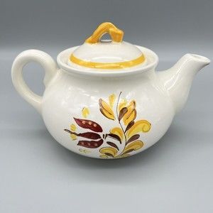 Vintage Stangl Provincial Redware Pottery Teapot With Lid Hand-Painted NJ USA