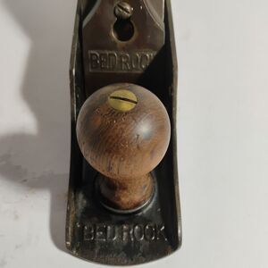 The Vintage Stanley Bedrock 605 Plane is a rare collectible tool with a corrugated sole and a patent date of April 2, 1910. This original piece from the United States weighs 4 pounds and 8.9 ounces, making it a unique and valuable addition to any woodworking or tool collection. The Stanley brand ensures high quality and craftsmanship, making this plane a sought-after item for enthusiasts and collectors alike.
