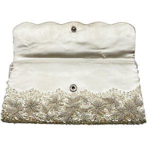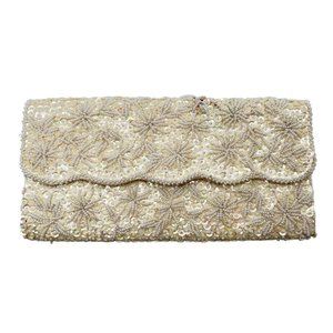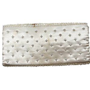 Vintage Star Brand White Beaded Sequin Clutch Evening Bag Elegant Hong Kong