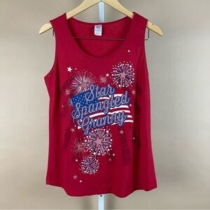Vintage Star Spangled Granny Size Medium Fireworks 4th of July Patriotic Tank