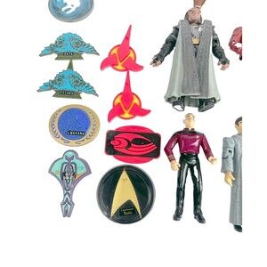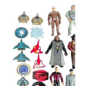 This Star Trek: The Next Generation action figure lot includes characters such as Captain Jean-Luc Picard, Worf, Tasha Yar, Geordi La Forge, Klingons, and more. Don't miss out on the chance to own these classic action figures.