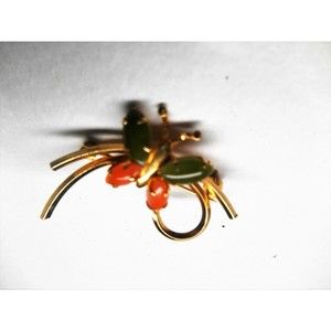 Vintage Star-Art Coral and Jade 14k Gold Filled Brooch