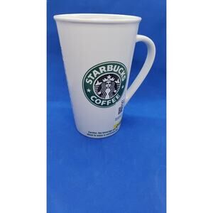 Classic white ceramic mug with large green Starbucks Coffee logo on the front
