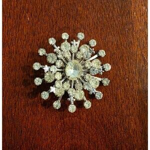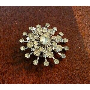 Vintage Starburst Design Rhinestone Cluster Brooch - Silver Tone - Snowflake