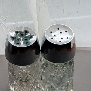 Vintage Starburst Glass Salt & Pepper Shakers With Metal Lids