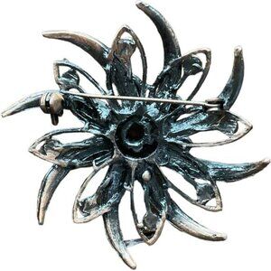 Once upon a time, in a world where elegance reigned supreme, this brooch was crafted to capture the essence of timeless beauty. The swirling starburst design, adorned with shimmering red and iridescent rhinestones, tells a tale of opulence and grandeur. Wear it on any garment as a tribute to a bygone era of elegance.