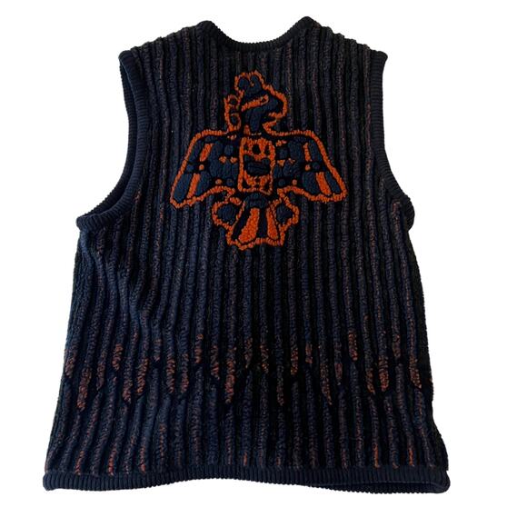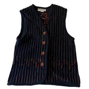 Vintage Starfire 90s Navy Soft Ribbed Aztec Boho Button-Down Vest Sz 10 M