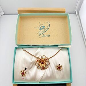 Vintage Starglow Jewels Gold Tone Necklace Brooch Matching Screw Back Earrings
