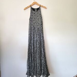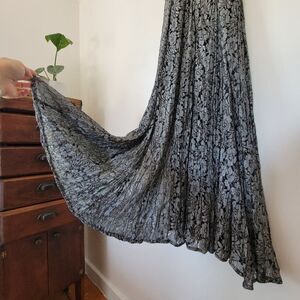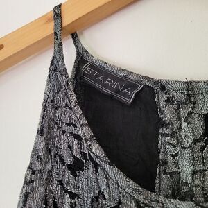 Vintage Starina Black Silver Gray Lace Overlay Maxi Dress Small Flowy