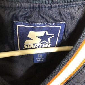 This is a classic piece of vintage sports apparel from the 1990s Starter era. Perfect for any Auburn Tigers fan, vintage streetwear collector, or lover of retro college gear. It is a V-Neck Pullover Windbreaker/Jacket Made in Korea in the Auburn Blue and Orange Colors. Men's Size Medium (measurements below). Zipper closure on left lower side, 100% Nylon outer shell wit 100% polyester and nylon inner liner. Elastic Cuffs and Waistband with Starter logo embroidered on the left sleeve cuff and center upper back. AU embroidered logo on left upper sleeve. This is a vintage item and has been worn. Refer to the photos for the exact condition of the item.