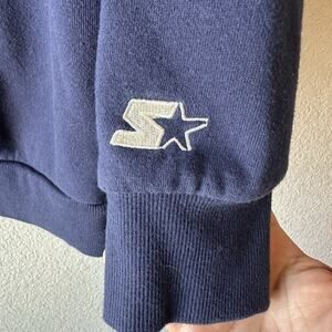 The Vintage Starter Dallas Cowboys NFL Team Apparel Crew Sweatshirt with the iconic Horse Logo features classic design and style. Made by NFL Team Apparel, this unisex adult sweatshirt in size M is perfect for any fan of the Dallas Cowboys. The blue color and sporty design make it a must-have for football enthusiasts looking to show their team pride in a comfortable and stylish way. Whether you're heading to a game or just hanging out with friends, this sweatshirt is a great choice for any Cowboys fan.