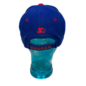 Vintage Starter Kansas Jayhawks Strapback Hat Mens Blue Embroidered Hook & Loop