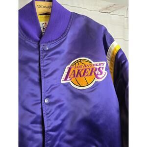 This Vintage Starter NBA Los Angeles Lakers Satin Bomber Jacket in Men's size XL is a stylish and nostalgic piece of fan apparel. The jacket features the iconic purple color scheme of the Los Angeles Lakers, making it a must-have for any die-hard basketball fan. With its retro design and high-quality construction from the trusted brand Starter, this jacket is a perfect way to show support for your favorite NBA team in a unique and fashionable way.