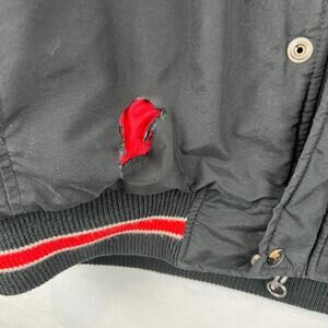 In Pre-owned, Vintage Condition. Please note the hole in the front near the pocket, zipper works but is missing original zipper pull, wrist on sleeve has some fray/hole. Lots of life left!
