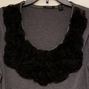 Vintage Starzzi Grey Flowered Neck Top size Medium
