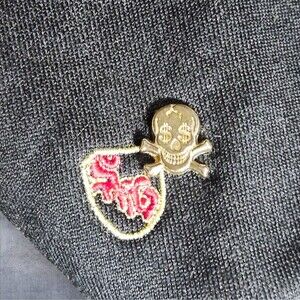 Custom money zipper pull and three solid metal ornaments: skull & crossbones, logo, and dollar sign