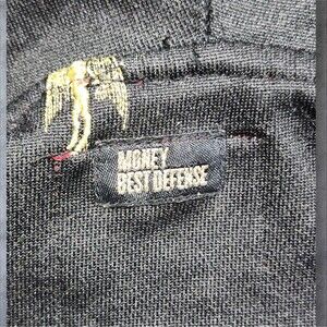 Gold embroidered details throughout, Money Best Defense lettering on back