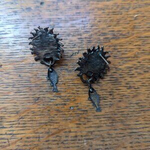 Vintage Statemen Earrings Starburst Circular Metal Pearl Fish Dangle Costume
