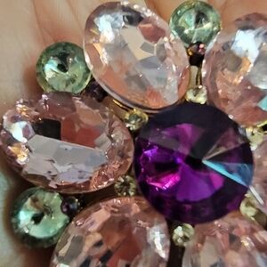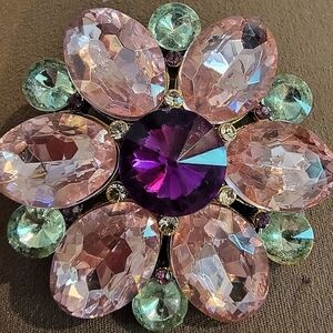 #Vintage Statement 2" Round #Brooch Deep Fuchsia Pink Lime Green Open Bck Flower