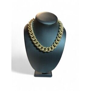 Vintage Statement 80s Gold Tone Wide Link Chunk Wide Chain Necklace 18" Heavy