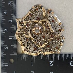 flower gold amber vintage flower brooch pin casual dressy work office simple classic timeless style everyday simple