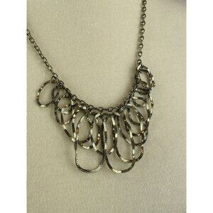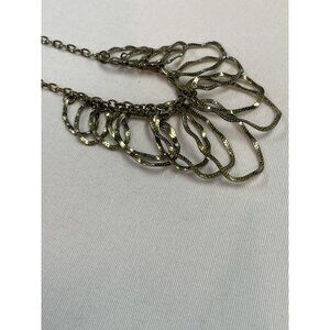Vintage Statement Gold Tone Bib Necklace Textured Metal Open Circles Adjustable