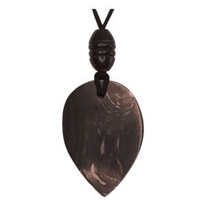 Vintage Statement Necklace Black Brown Resin Tear Drop Pendent Black Cord Bohemi