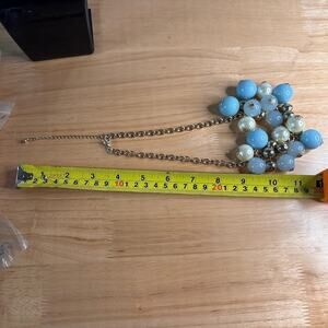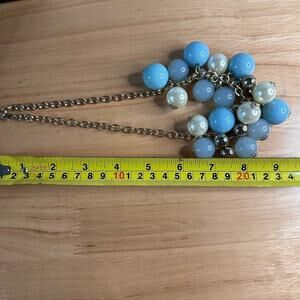 Bring some vintage glam to your outfit with this bold baby blue and pearly white bauble statement necklace!