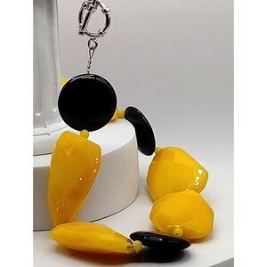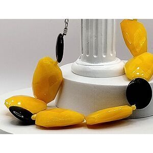 Vintage Statement Necklace of Large Yellow Aventurine and Black Agate Beads 18"