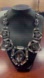 😍 Vintage Statement Necklace-Lg. Smokey Crystals, Baguette Stones, Pewter Chain