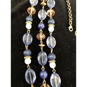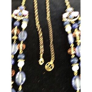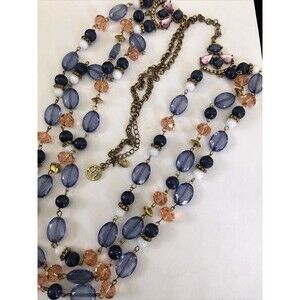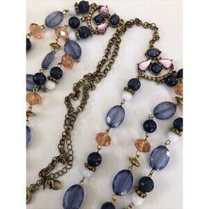 Vintage Statement Triple Strand Long Beaded Necklace Blue/pink White 40” Signed