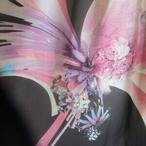 I am presenting you a gorgeous vintage Status by Chenault Floral Roses Bohemian Chiffon Open Cardigan in Size L.