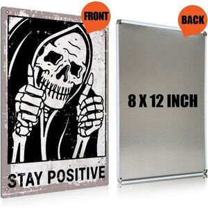 Vintage Stay Positive Skull Sign Metal Tin Sign Wall Décor Funny