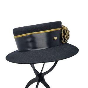 Vintage Steampunk 100% Wool Felt Top Hat Black Gold 3D Rosette USA Cosplay