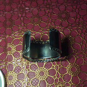 Here is a vintage from the 1980s steel unisex bangle cuff bracelet. It has a gap opening to slip over your hand. It has some slight scratches but overall it is in very good condition. I have never worn it.