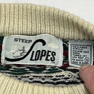 Vintage Steep Slopes XL Fair Isle Print Knit Ski Sweater 90s Virgin Acrylic