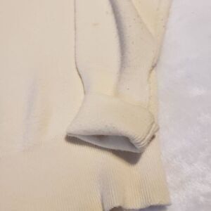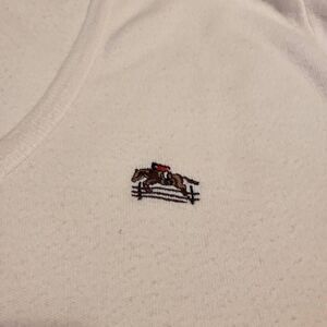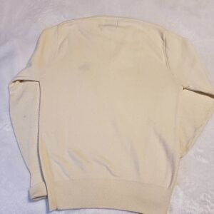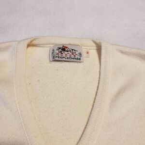 Vintage Men's Steeplechase cream colored sweater ,v neck, long sleeve size medium with embroidered horse and rider jumping fence.