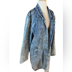 Vintage Stefano Retro Long Sleeve Open Front Denim Trench Style Long Jacket