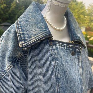 Vintage Stefano Worldwide Striped Denim Biker Jacket (M)